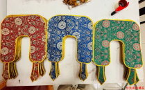 官將首披肩 觀音花版 紅色 藍色 綠色